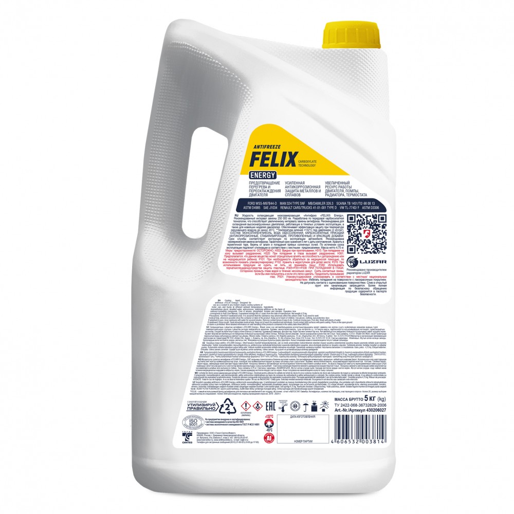 Антифриз Felix Energy (желтый) 5л - антифриз для систем охлаждения двигателей внутреннего сгорания эксплуатируемых в тяжелых условиях.