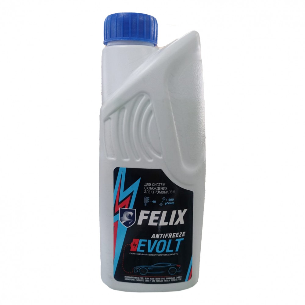 Felix EVOLT (сине-зеленый) 1л Антифриз с карбоксилатной технологией (OAT), разработанный для выполнения особых требований автомобилей с электрическими силовыми установками. Его ключевая особенность — сниженная электропроводность, что критически важно для безопасности высоковольтных систем.